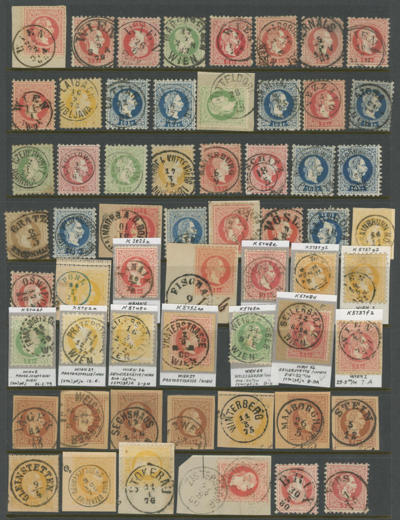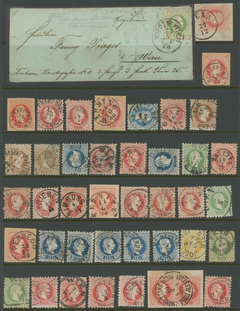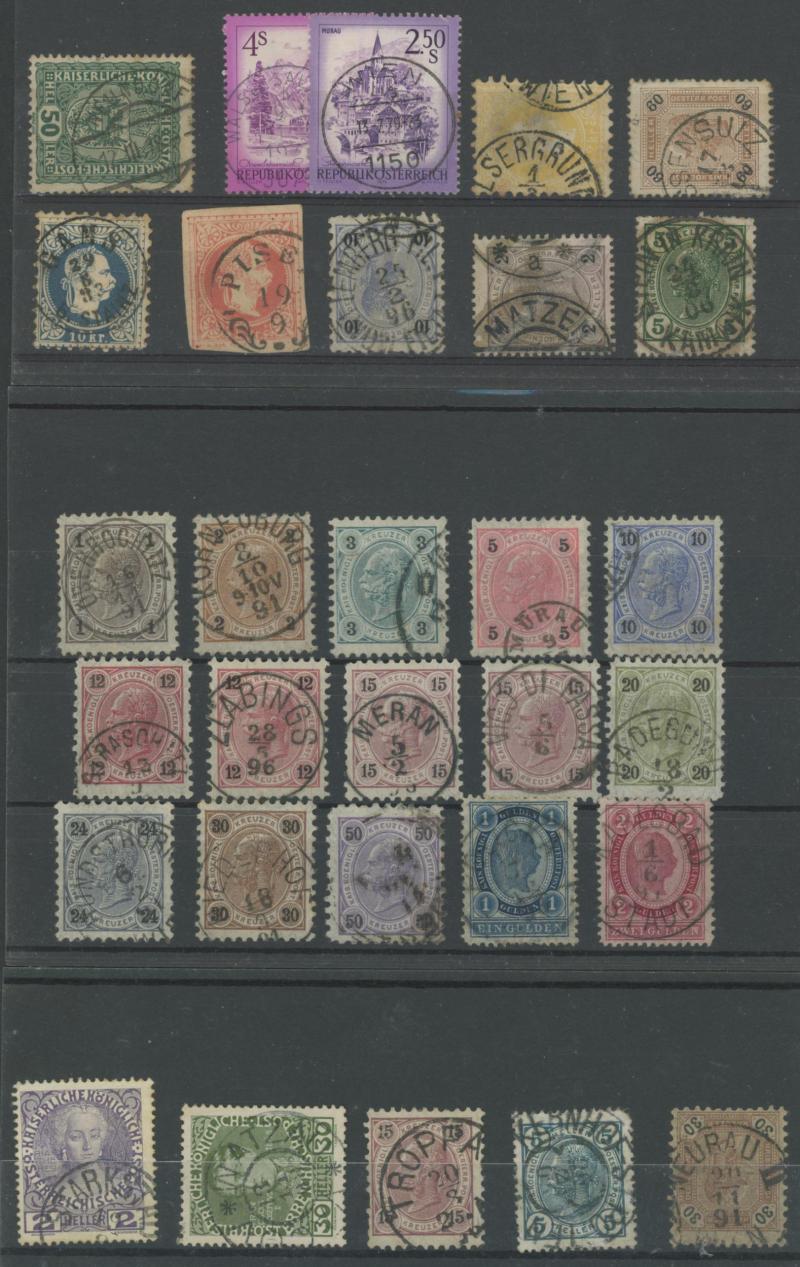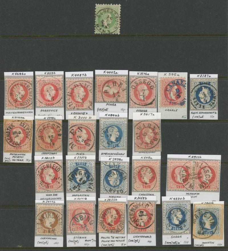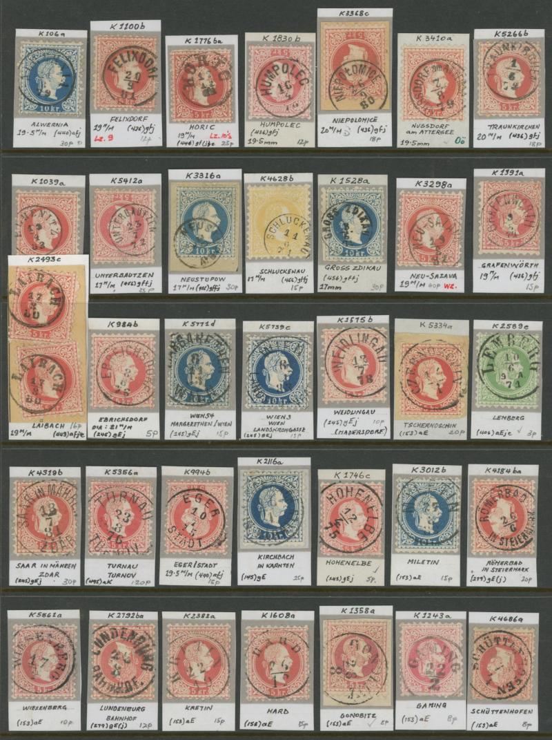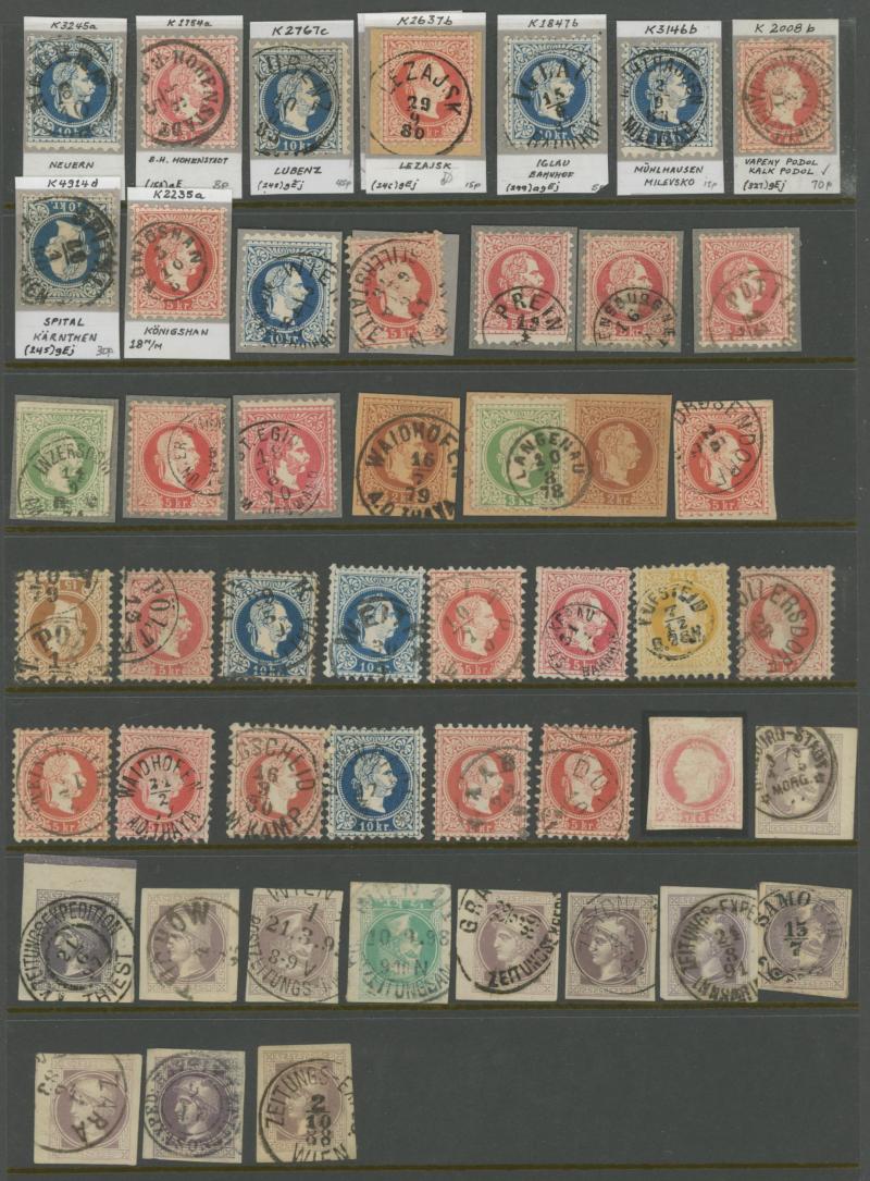 margins large all around, then an extensive range of postmarks mostly on 1867-1890 Franz Joseph Heads plus a couple on covers one with superb 'POZECA' 1870 cds, the strikes generally well above-average, condition a little variable but mostly fine to
