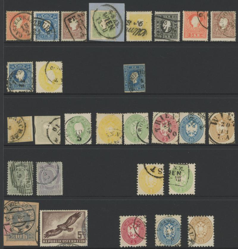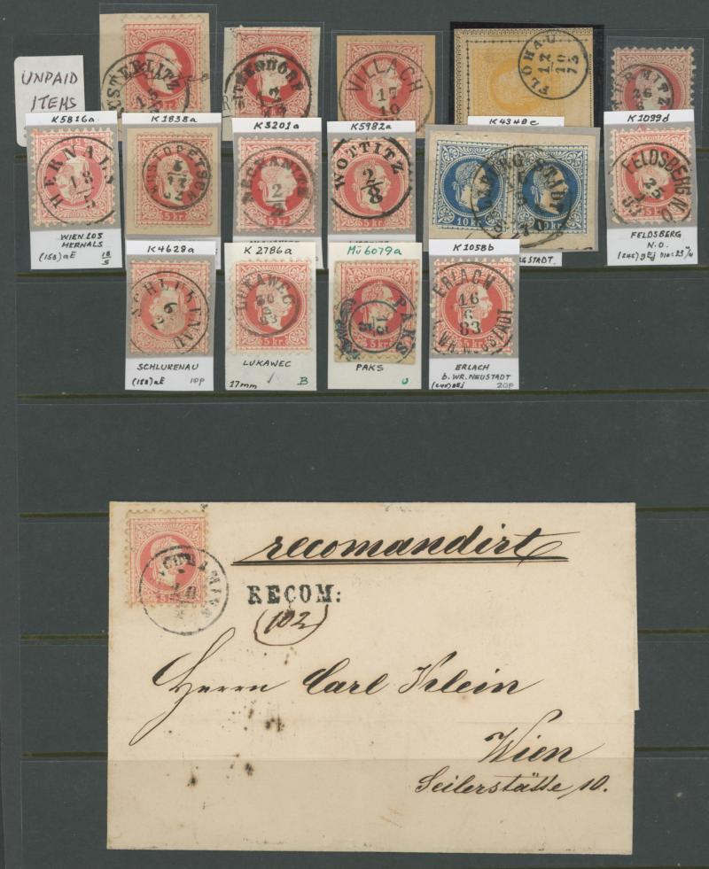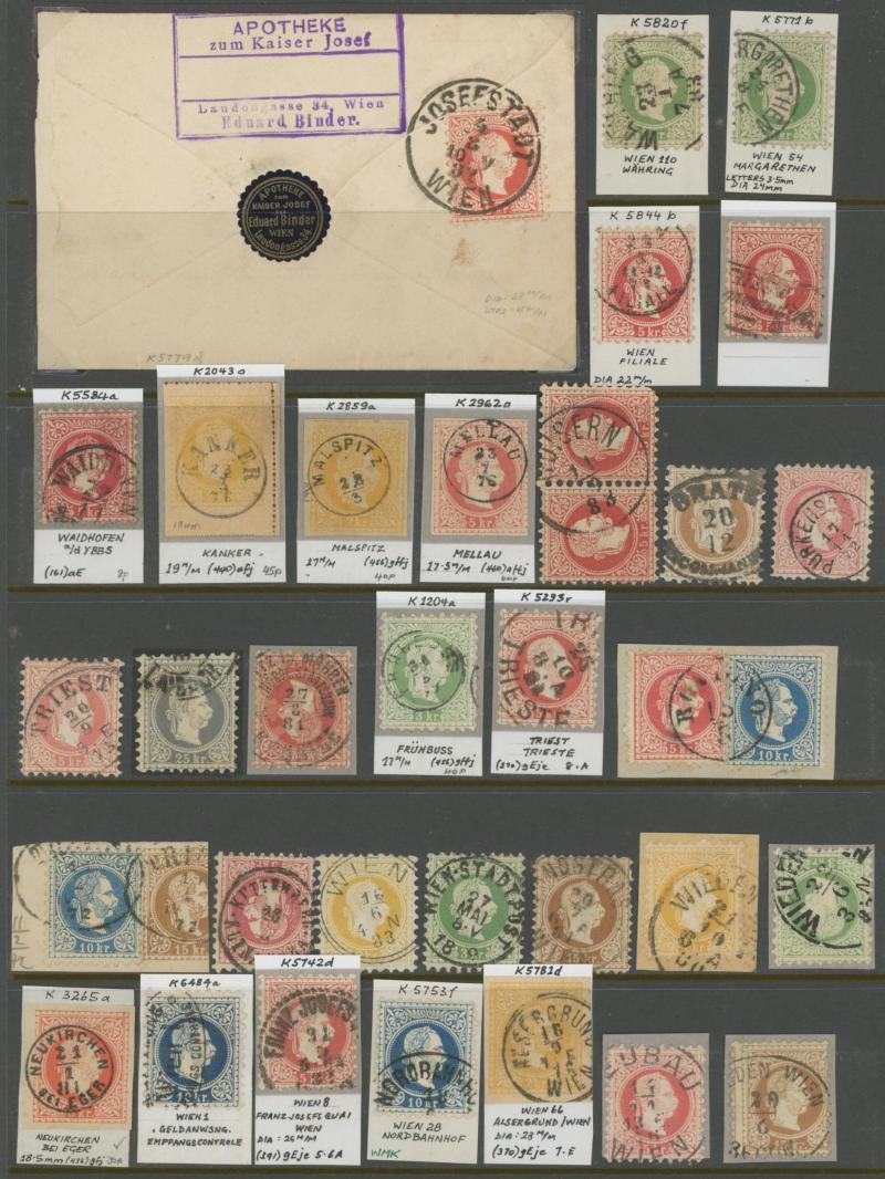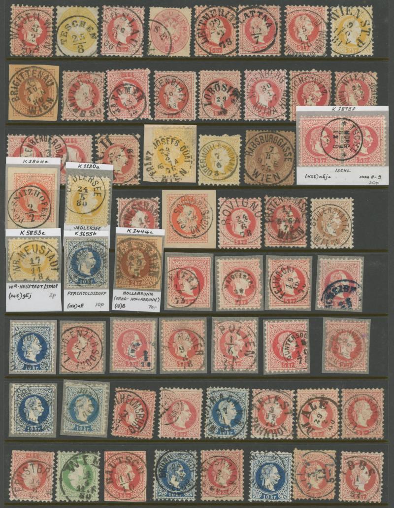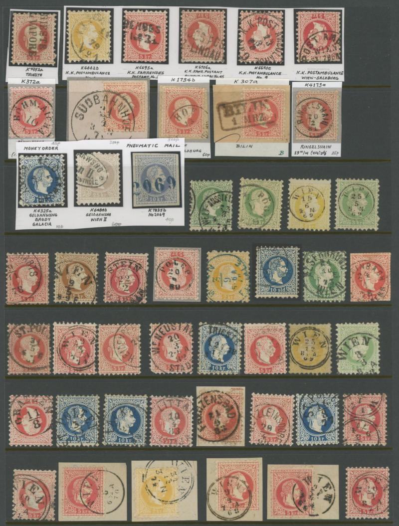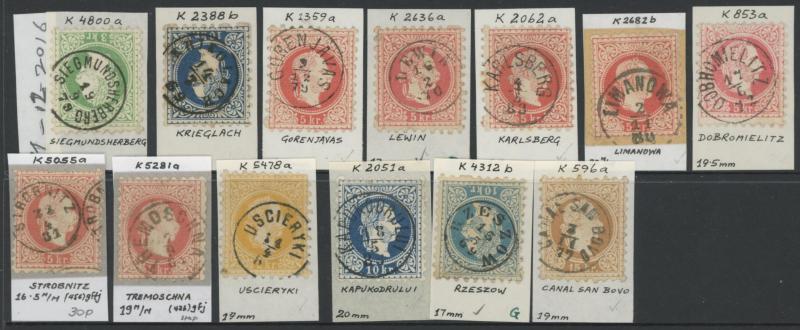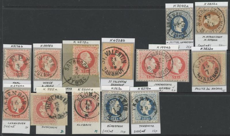 margins large all around, then an extensive range of postmarks mostly on 1867-1890 Franz Joseph Heads plus a couple on covers one with superb 'POZECA' 1870 cds, the strikes generally well above-average, condition a little variable but mostly fine to