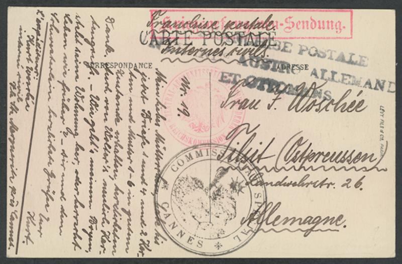 ALLEMAND/ET OTTOMAN' and 'COMMISSION SPECIAL/[French arms]/ CANNES' cachets, to Germany with message in German. (Image1) (Image2)