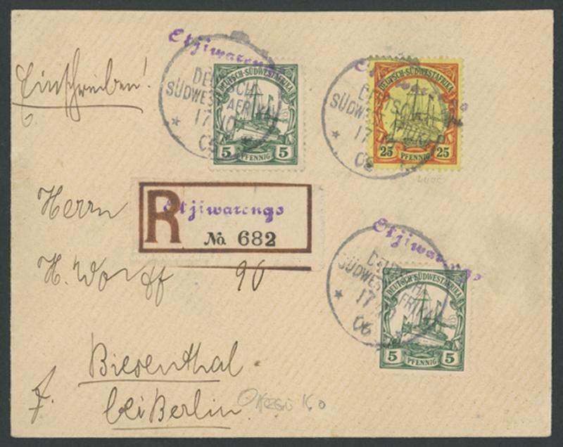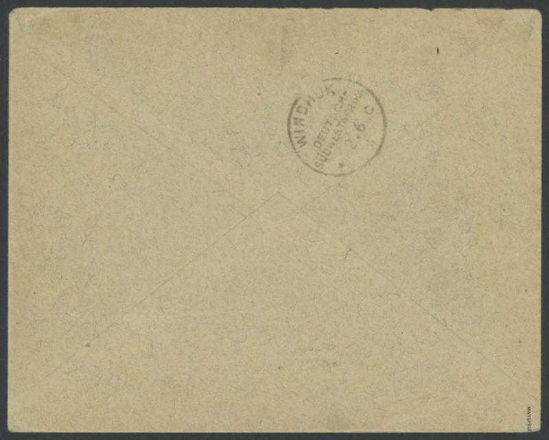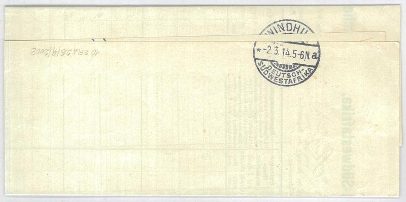 WINDHUK/DEUTSCH-/SUDWESTAFRIKA/2.3/14' cds, Windhuk arrival backstamp. (Image1) (Image2)
