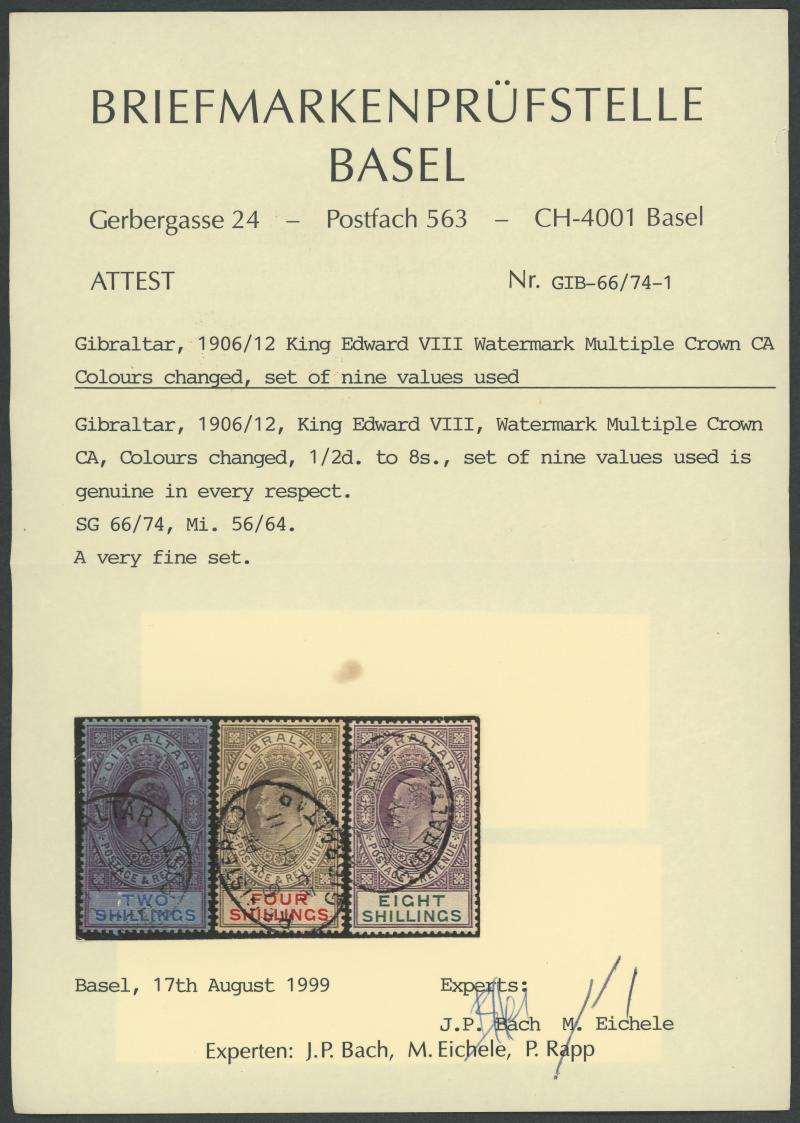 all with cds or oval registration cancels but the 2/- with 'PARCEL POST' datestamp, Cat £900. Briefmarkenprufstelle Basel Certificate (1999) for all values.