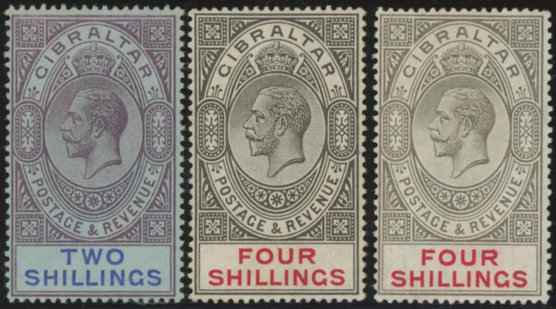 1904-08 KEVII Keyplates Multiple Crown CA Watermark New Colours 4/- black & carmine and 8/- purple & green SG 73-74, fresh colours,