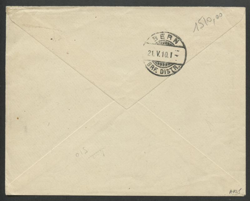 1910 offical cover with 'CONDOMINIUM/des/NOUVELLES-HEBRIDES/SERVICE DES POSTES' imprint at upper-left, to Switzerland with