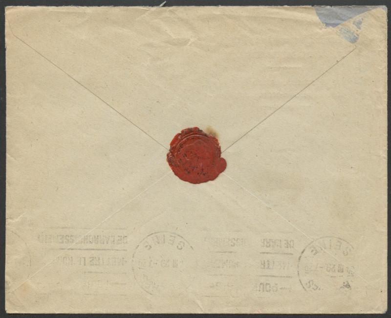 French 75c (7½d) SG F49 tied by one of two large-part to very fine strikes of 'NELLES HEBRIDES/1/FEVR/29/SERVICE MARITIME' cds, 'ASNIERES/24.III.29/SEINE' arrival slogan on the reverse, minor bends and small flap fault. Not recorded by Roland
