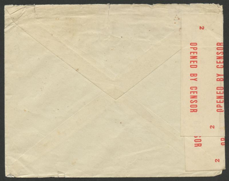 Three different labels were recorded by the Civil Censorship Study Group in 2008. Type L1 is typed, recorded 23OC39 only; L2 is the brown label & we expect the recorded example, of 12JE40, has the text printed in blue as here; L3 is as for the white