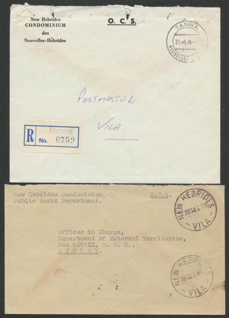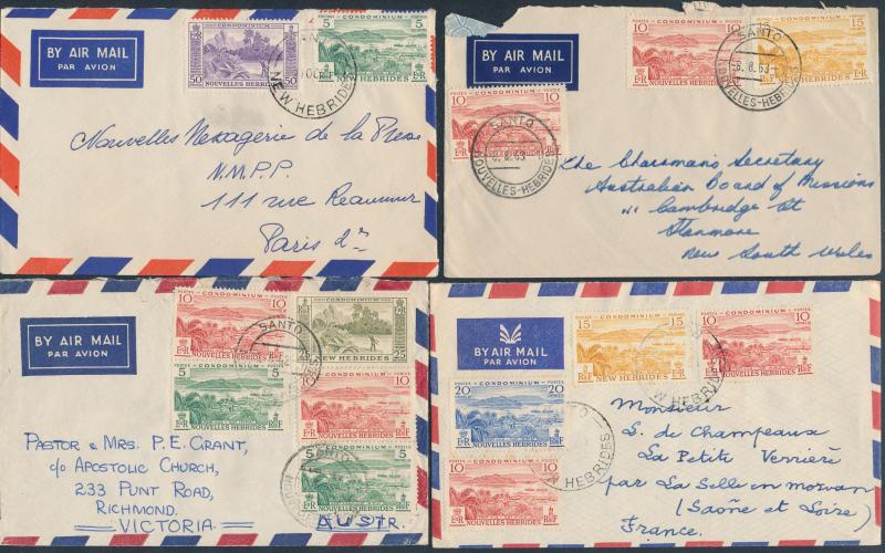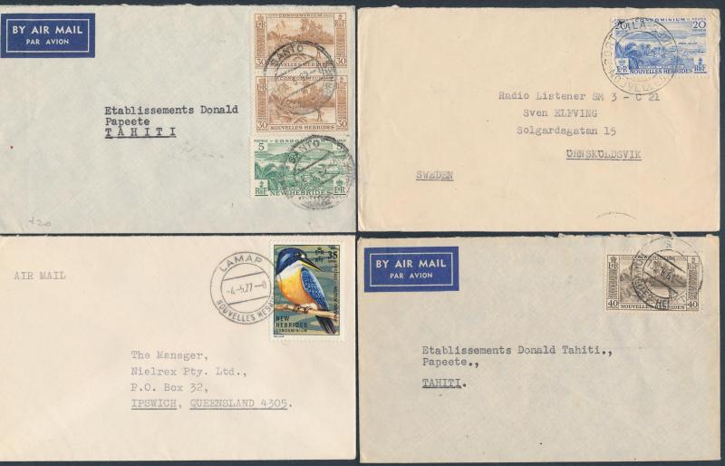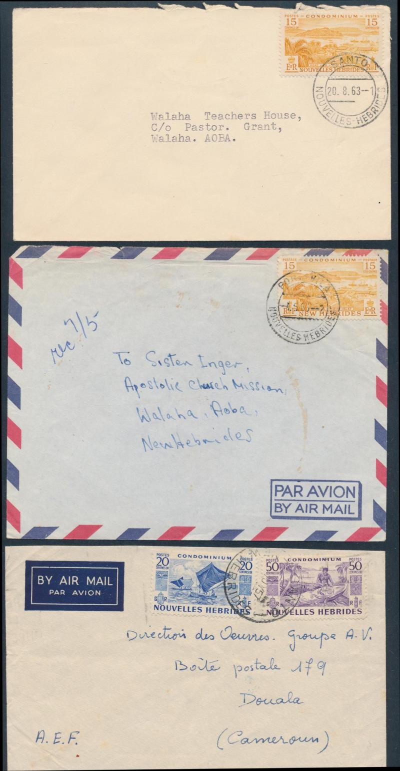including 'LAMAP', 'LOLOWAI', 'MELSISI', 'NORSUP', 'TANNA' & 'TONGOA', registered x6 including with Australian-pattern R labels of 'LAMAP' & 'SANTO' x2 plus Avis de Reception cards x3, a few with company imprints, many airmails including inter-island