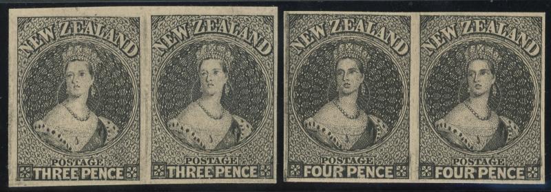 1855-73 QV Chalons Hausberg reprinted imperforate plate proofs 3d, 4d, 6d & 1/- all in black on thin card in matching horizontal