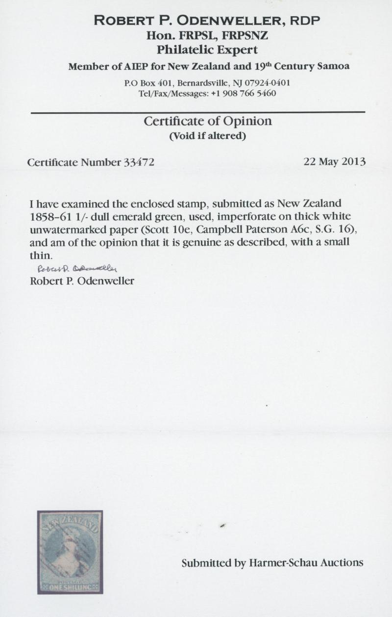 '1' cancel leaving much of the Queen's face clear, a couple of small thins at the base do not detract from the very fine facial appearance, Cat £1900 (NZ$4000; US$1850). Bob Odenweller Certificate (2013). (Image1) (Image2)