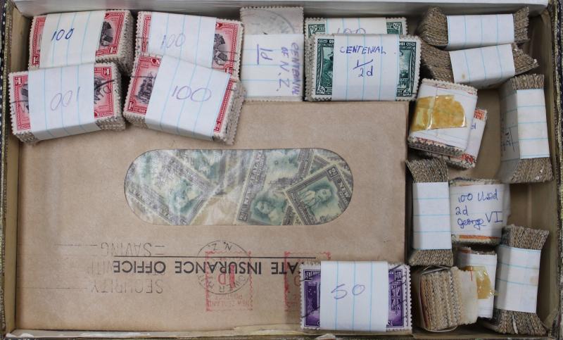 Pictorials & 1940 Centennial low values in bundles x30+, Postage Dues, also Revenues QV Tall Postal Fiscals 2/6d brown x25 & 3/- violet x100+, KGV Admiral 3/- violet fiscally used x200+, etc, plus one cigar box with mint KGVI/QEII Pre-Decimal singles