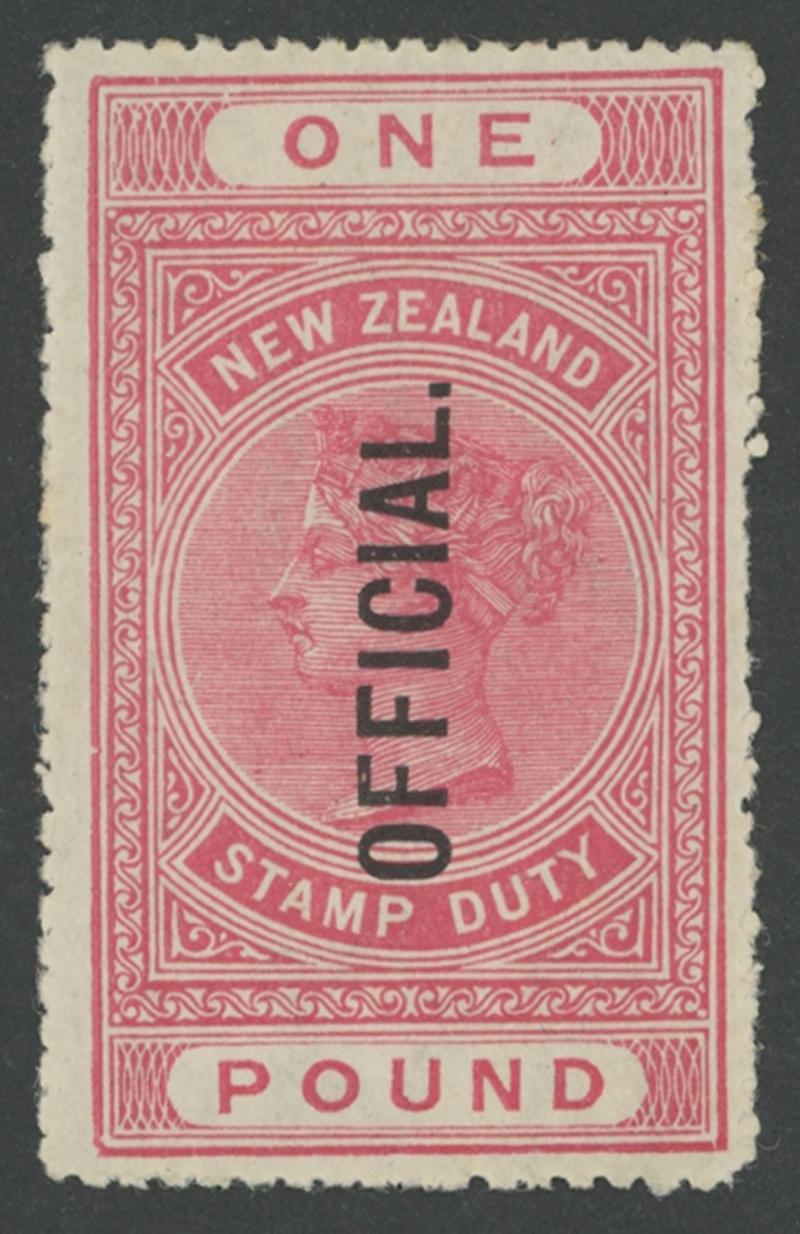 OFFICIAL STAMPS: 1908-09 'OFFICIAL.' Vertical Overprint on QV Tall Postal Fiscals Perf 14 £1 rose-pink SG O72a (CP ZO15f),