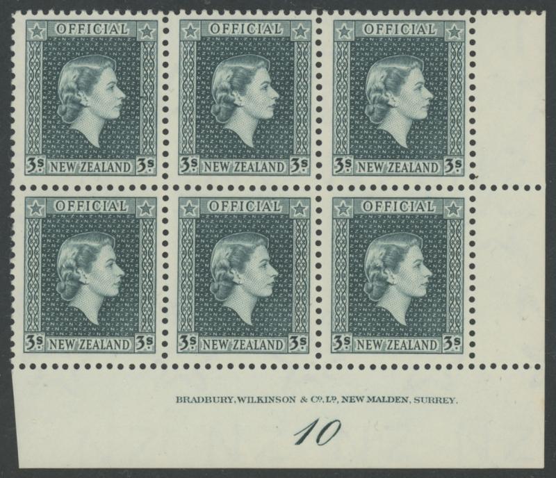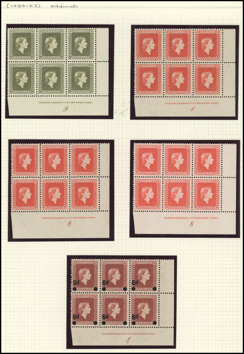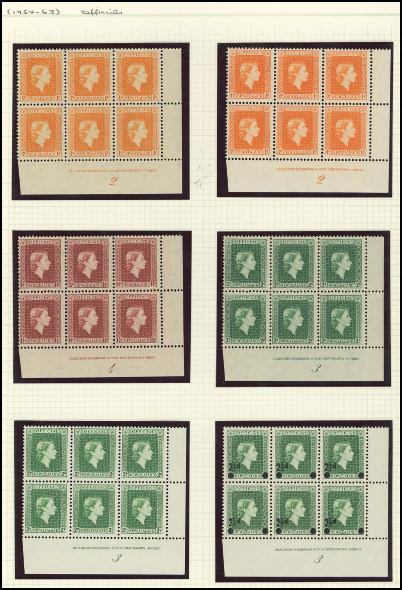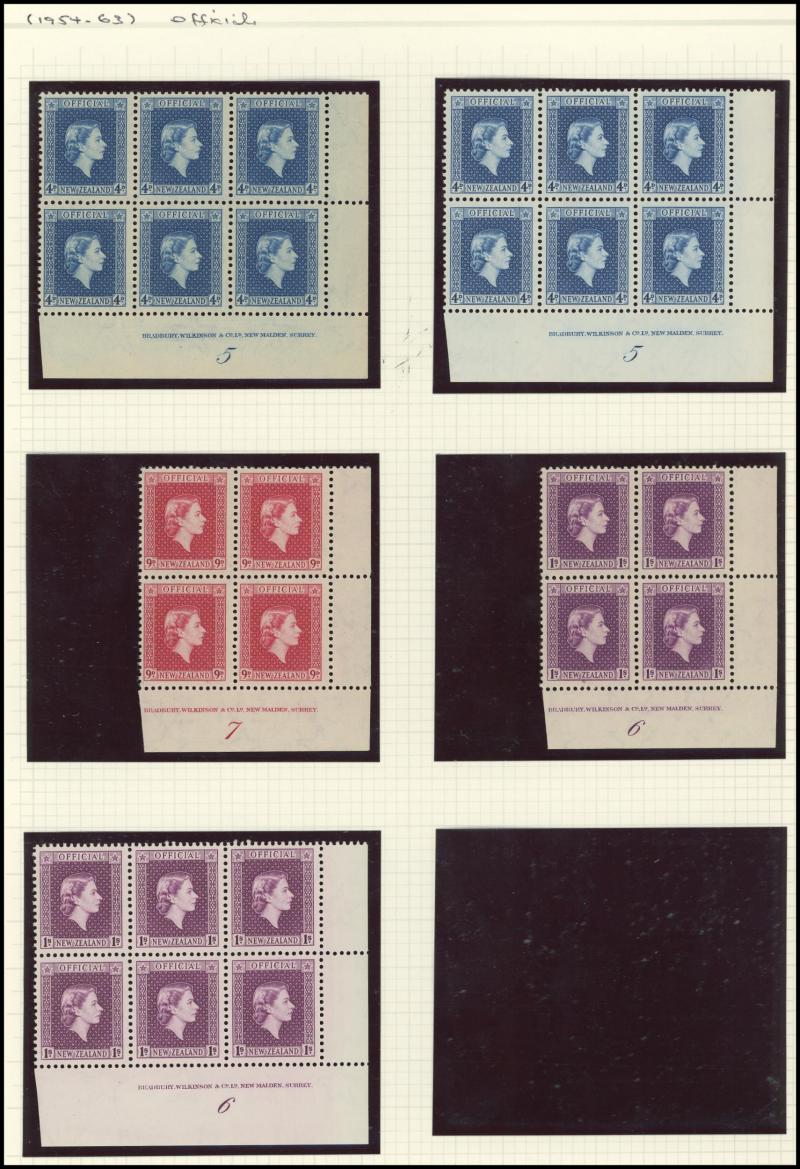 OFFICIAL STAMPS: set SG O159-O167 Plate Number blocks of 6 (the 9d & 1/- blocks of 4) including 3d with both '1' & '8' and Thick