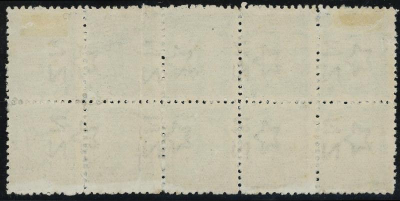 (5x2), wayward centring & rough 'fluffy' perfs, a few light gum bends, the upper units lightly mounted or with small hinge remainders, the lower units unmounted, Cat £950+ for mounted singles. A scarce multiple. (Image1) (Image2)