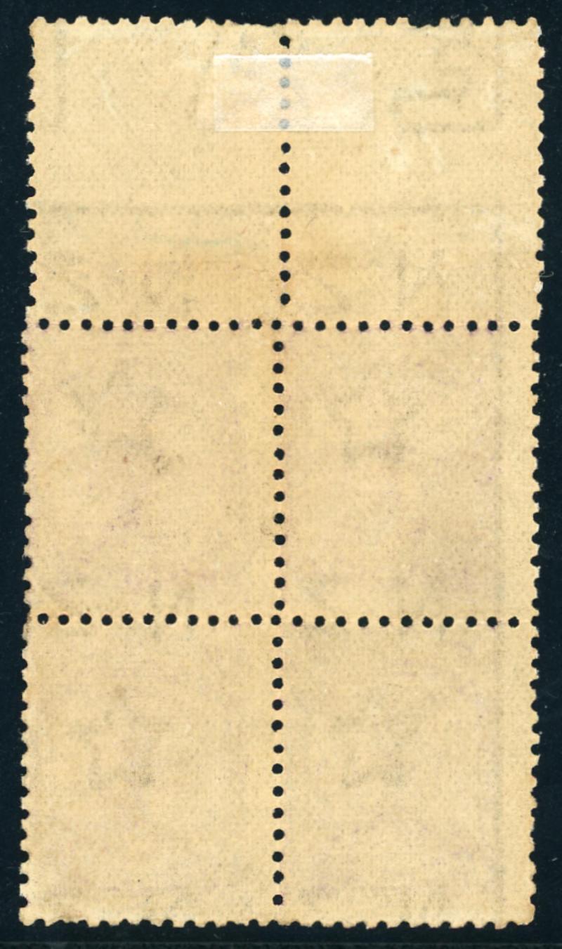 top of the sheet showing the watermark misplaced into the margin, wayward centring, small hinge remainder in the margin only, the stamps unmounted but with some minor aging & gum disturbance, Cat £480+ for mounted singles. A scarce multiple. (Image1) (Image2)