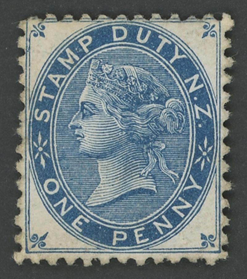 POSTAL FISCALS: 1882 QV Small Stamp Duty NZ/Star Watermark Type 12c Provisional 1d blue with the Watermark Inverted SG F2w (CP