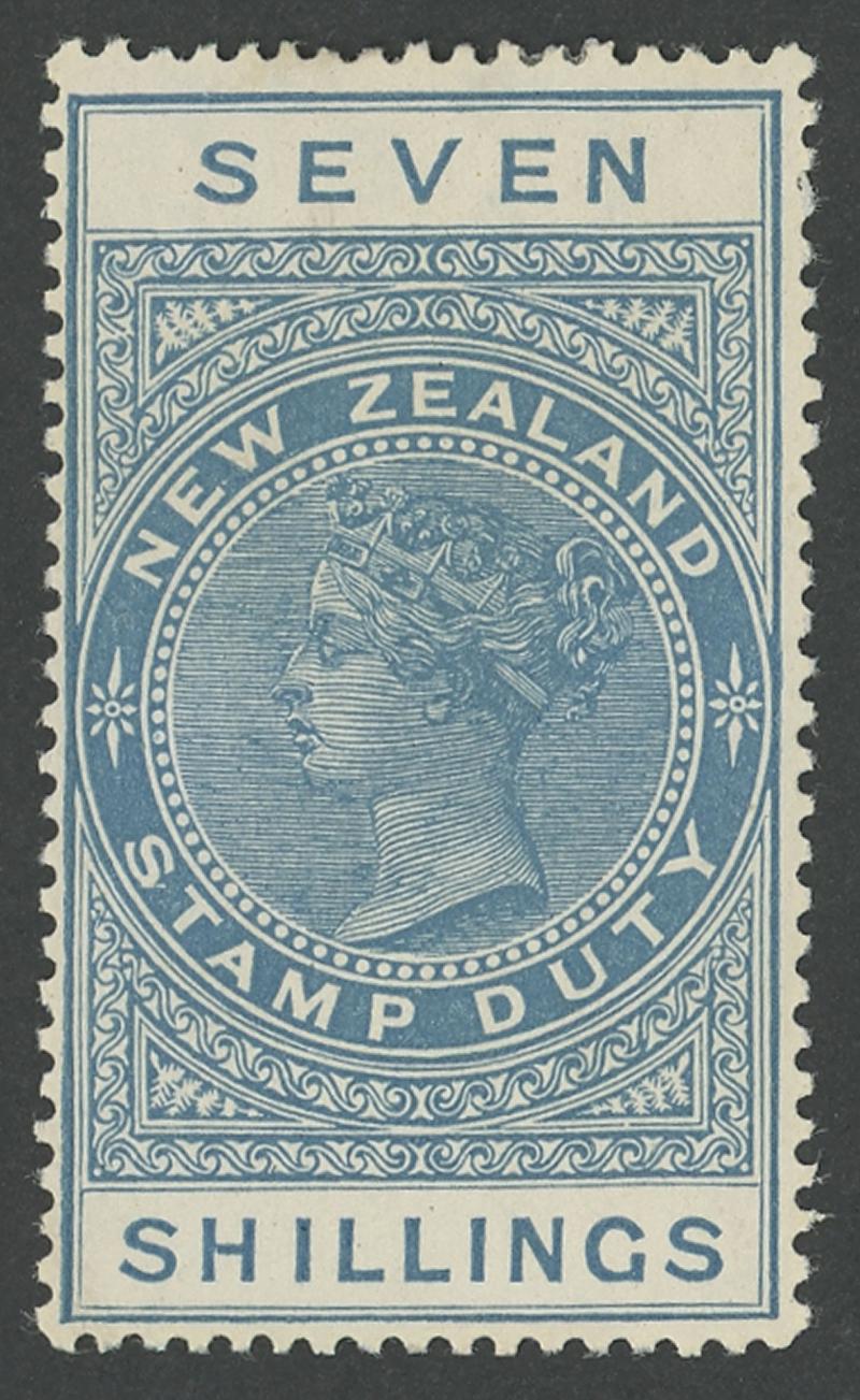 POSTAL FISCALS: 1906 QV Tall Stamp Duty Cowan Paper NZ/Star Single Watermark Perf 14 7/- pale blue SG F83, well-centred, small