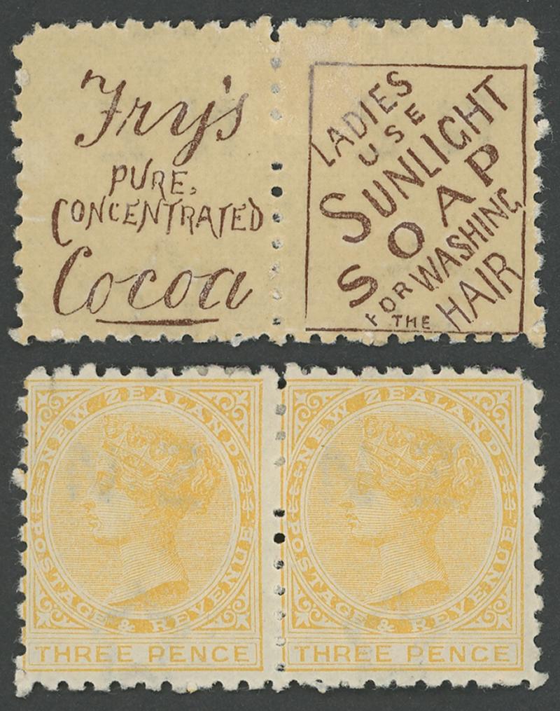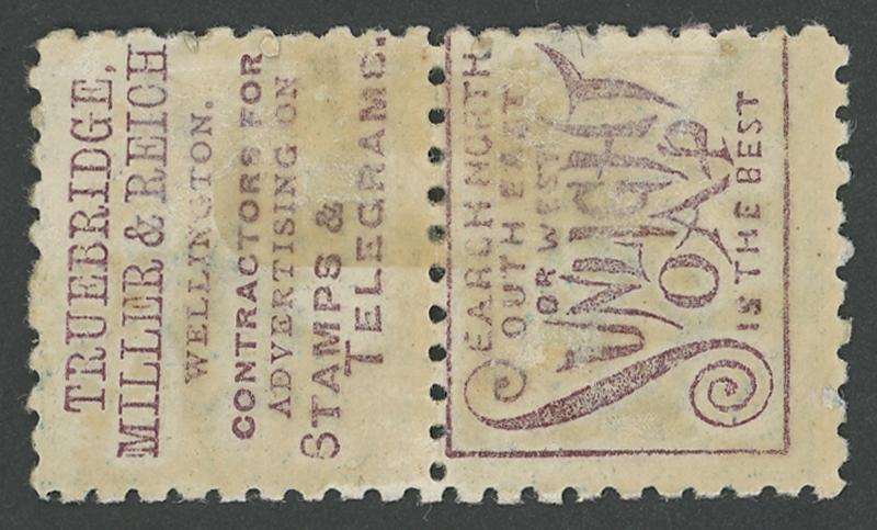 ADVERTISING STAMPS ('ADSONS'): 1882-1900 QV Second Sidefaces Vertical Mesh Paper NZ/Star Watermark Type 12b Perf 10 3d pale
