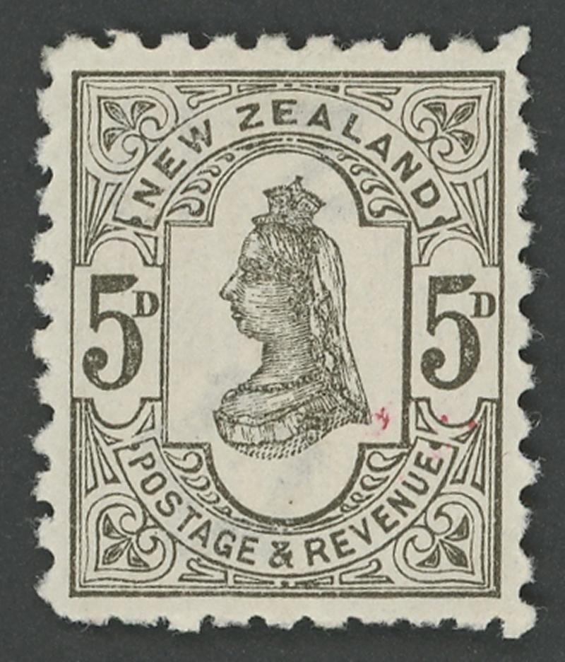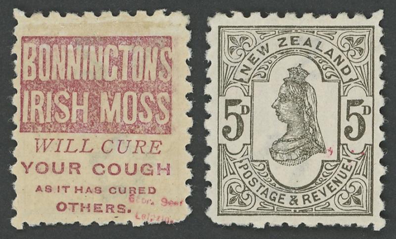 ADVERTISING STAMPS ('ADSONS'): 1882-1900 QV Second Sidefaces Vertical Mesh Paper NZ/Star Watermark Type 12b Perf 10 5d olive-black