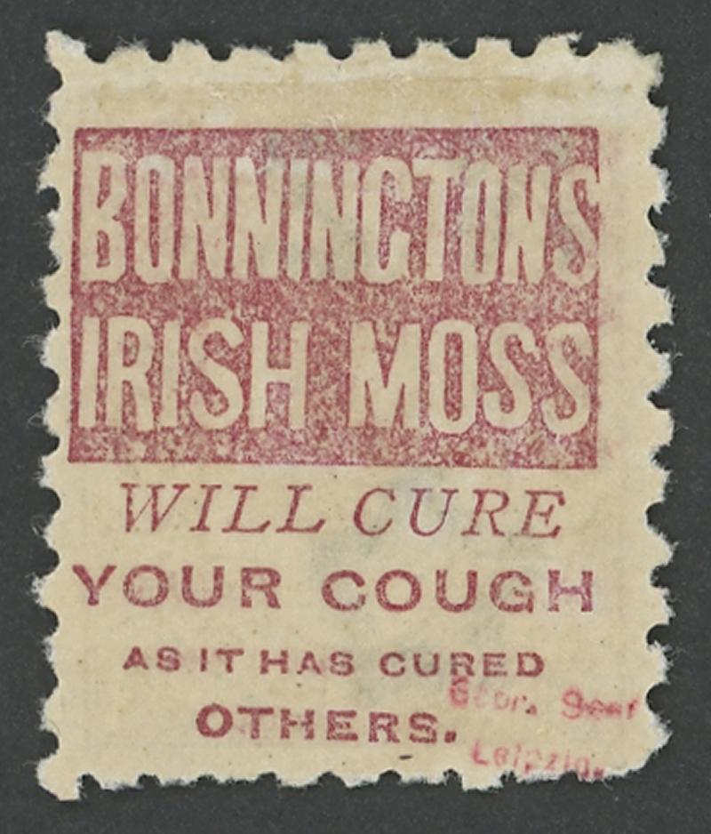 Adverts in Brown-Purple (Third Setting) SG 223a for Bonningtons Irish Moss, well-centred, a few characteristic uneven perfs, lightly mounted, Cat £200. (Image1) (Image2)