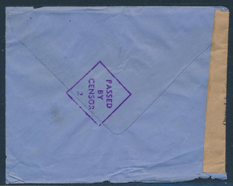 AIR MAIL.' label, rare black/brown 'Opened by Censor.' label (Little L2; one date only recorded so rated 10/10) and very fine diamond 'PASSED/BY/CENSOR/ 2 ' cachet in violet (Little H2; 2; one date only recorded so rated 10/10) & a superb strike on
