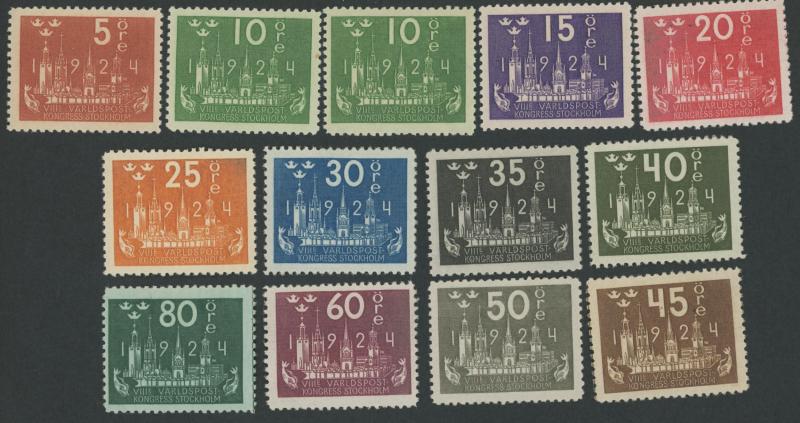 1924 Universal Postal Union Congress 5o to 5kr set SG 146-160, Michel 144-158, some discolouration on 2kr, unmounted, Cat SG £750
