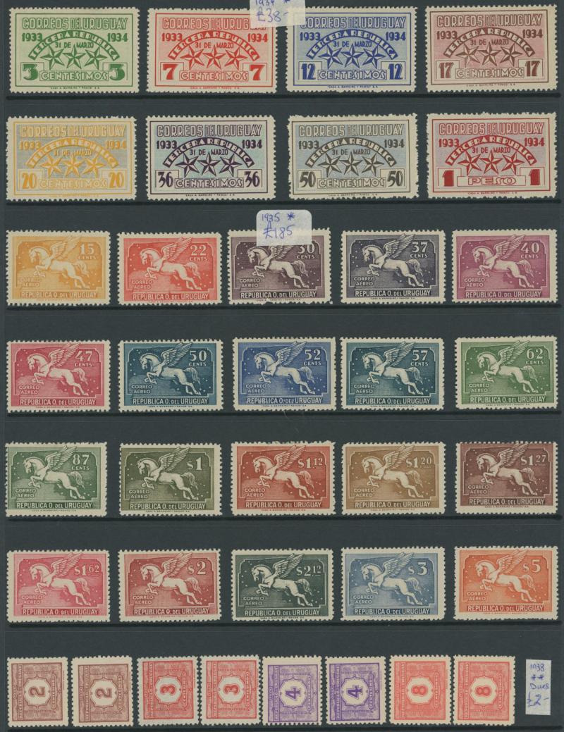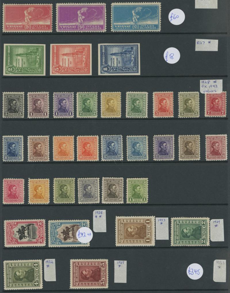 URUGUAY: 1924-89 collection on hagners including 1928 Airmail set, 1929 to 10p (both colours), 1929-30 Airmail set, 1931 Philatelic