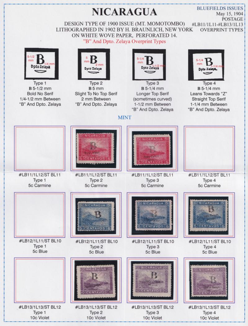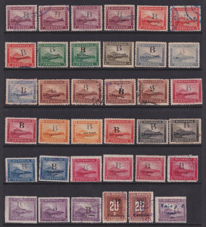 NICARAGUA - ZELEYA PROVINCE: 1904 Bluefields 'B/Dpto. Zeleya' Handstamps selection with a range of different types including on