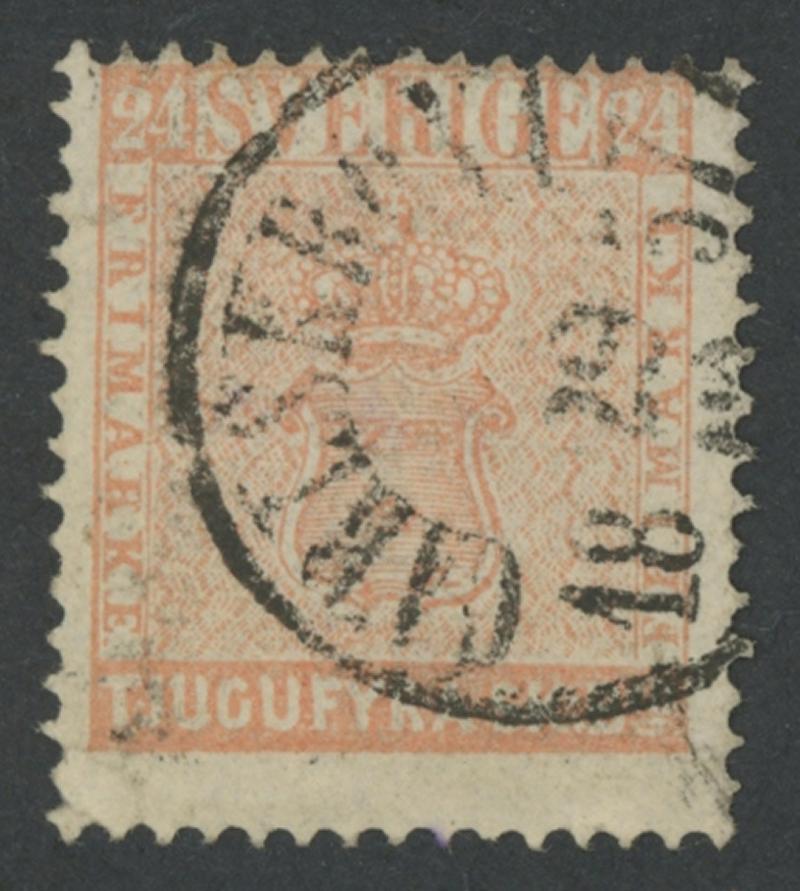 1855-58 Arms 24s vermilion SG 5 (Michel 5a), wayward centring as usual for this issue, large-part 'CARLSKRONA' 1857 cds, Cat £2500
