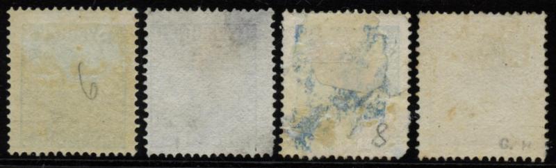 2d violet block of 4 both plated by Types, Perf 12½ 6d blue block of 4 and 1/- green singles x2, 1891 Surcharges 'FOUR/PENCE' Without Stop in a se-tenant strip of 3 with normal stamps either side, 1891 Stars Overprints 1d & 2d, 1892 set plus