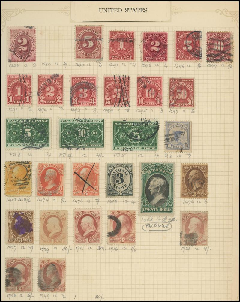 and various other Private Carriers (reproductions?), American Rapid Telegraph 1c to 25c with 'specimen' punch-holes (8), also Federal & State Revenues group (high values with 'FACSIMILE' handstamps), etc, plus a few Canal Zone & Philippines including