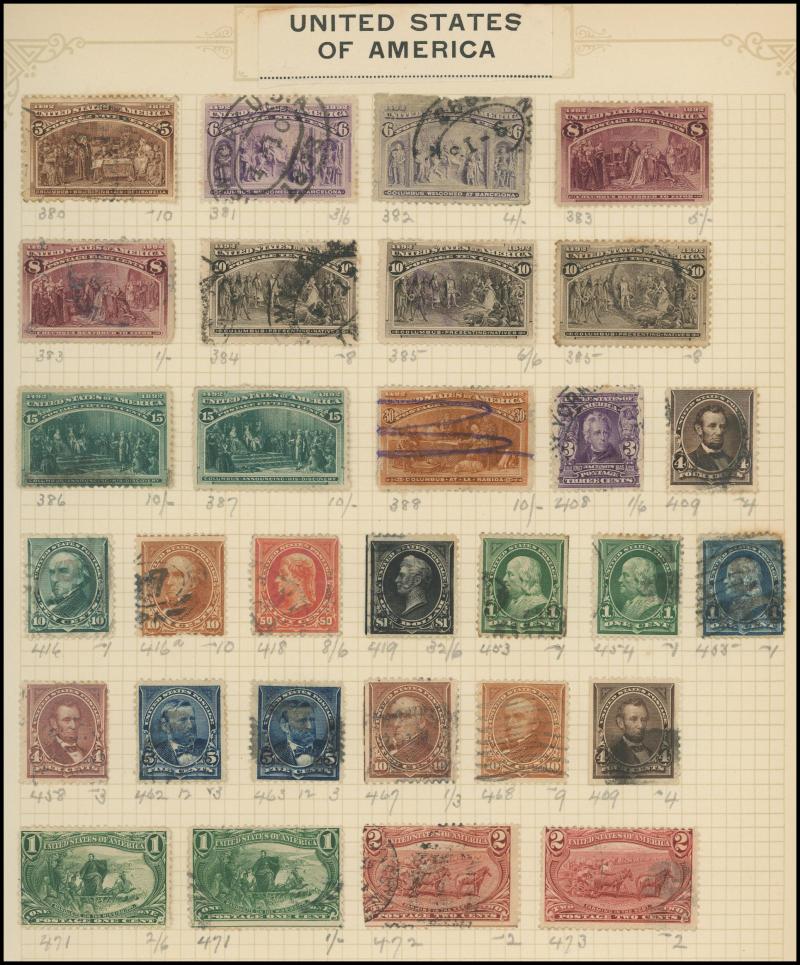 Washingtion 24c x2 and others to 30c in rather mixed condition, 1869 Pictorials 6c 10c & 12c, Large Banknotes to Perry 90c carmine (tiny closed tear), 1893 Columbians to 15c unused & 30c used (pencil cancel), 1901 Pan-American Expo set * & used,