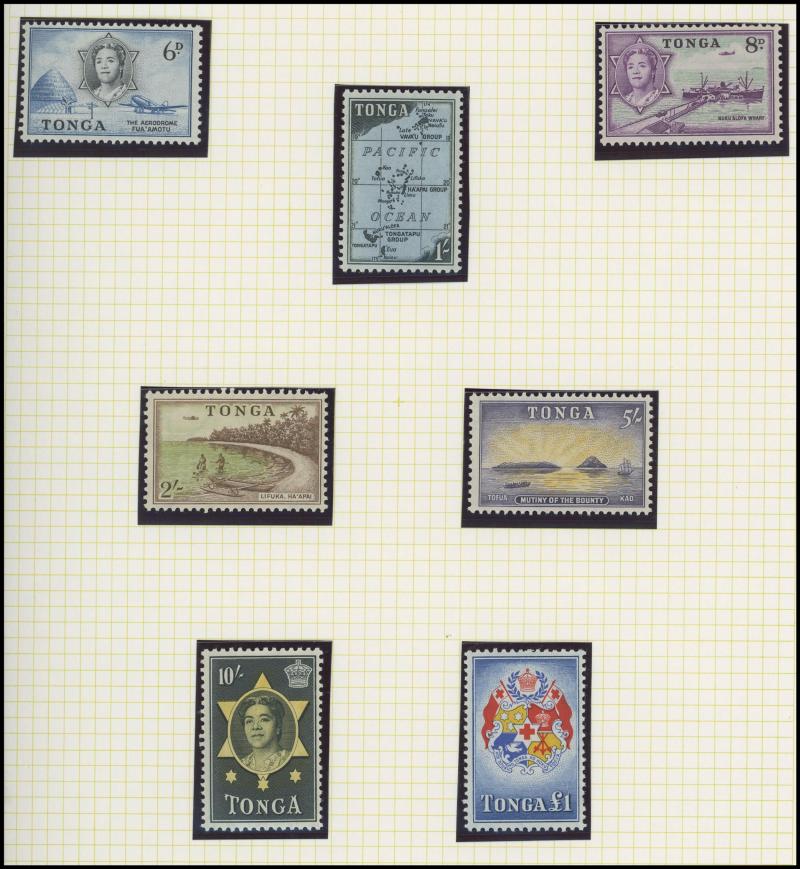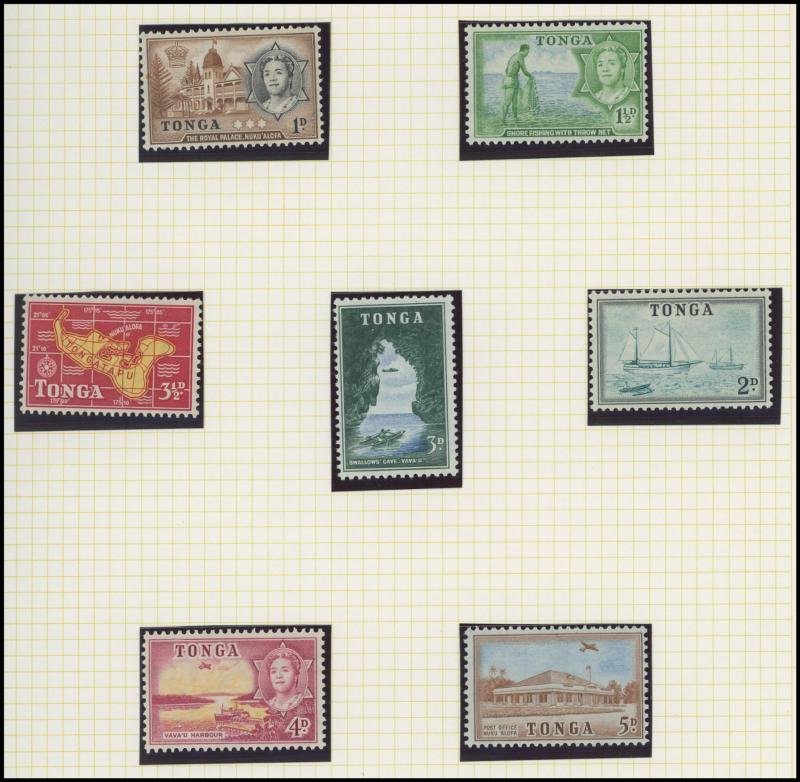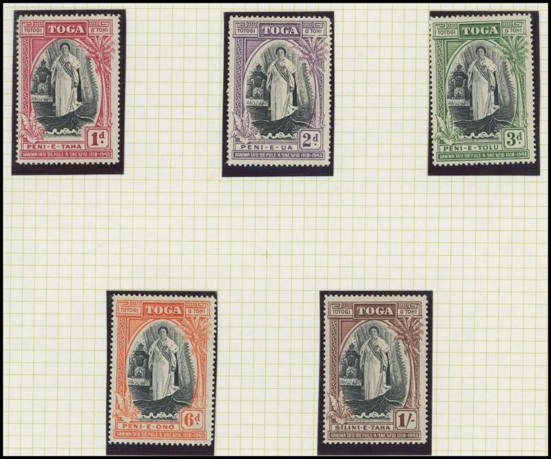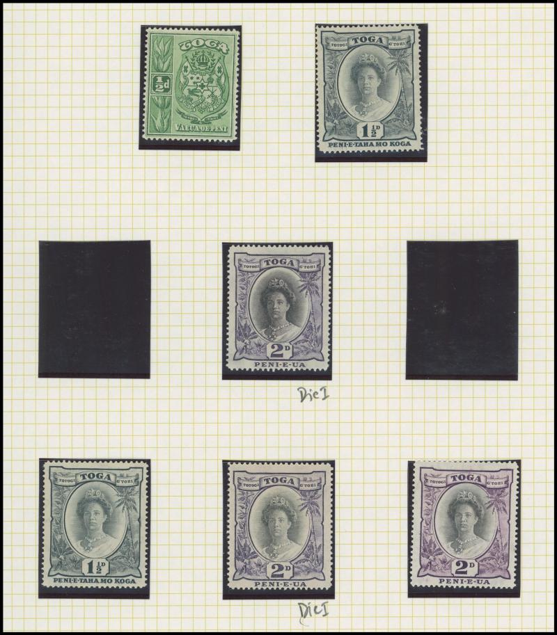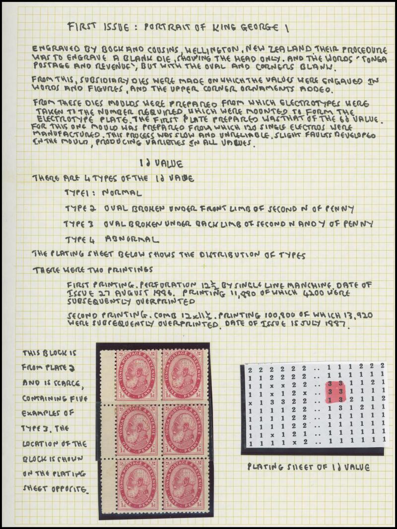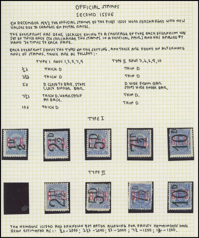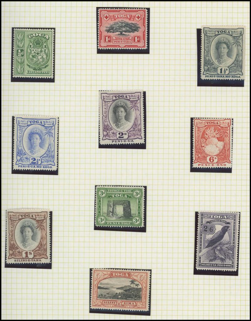 1895 Surcharges on Unissued 2½d vermilion ½d, 1d & 7½d, 1895 King George II set x2, and Official Stamps 1893 'G.F.B.' Overprints set, also 'SPECIMEN' horseshoe punctures 1938 Queen Salote, 1942-49 Pictorials Multiple Script CA Wmk, and 1944 Silver