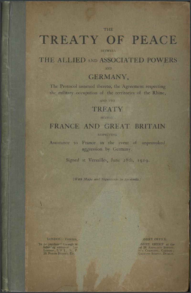 respecting the military occupation of the territories of the Rhine, and the Treaty between France and Great Britain respecting Assistance to France in the event of unprovoked aggression by Germany. Signed at Versailles, June 28th, 1919' [London,