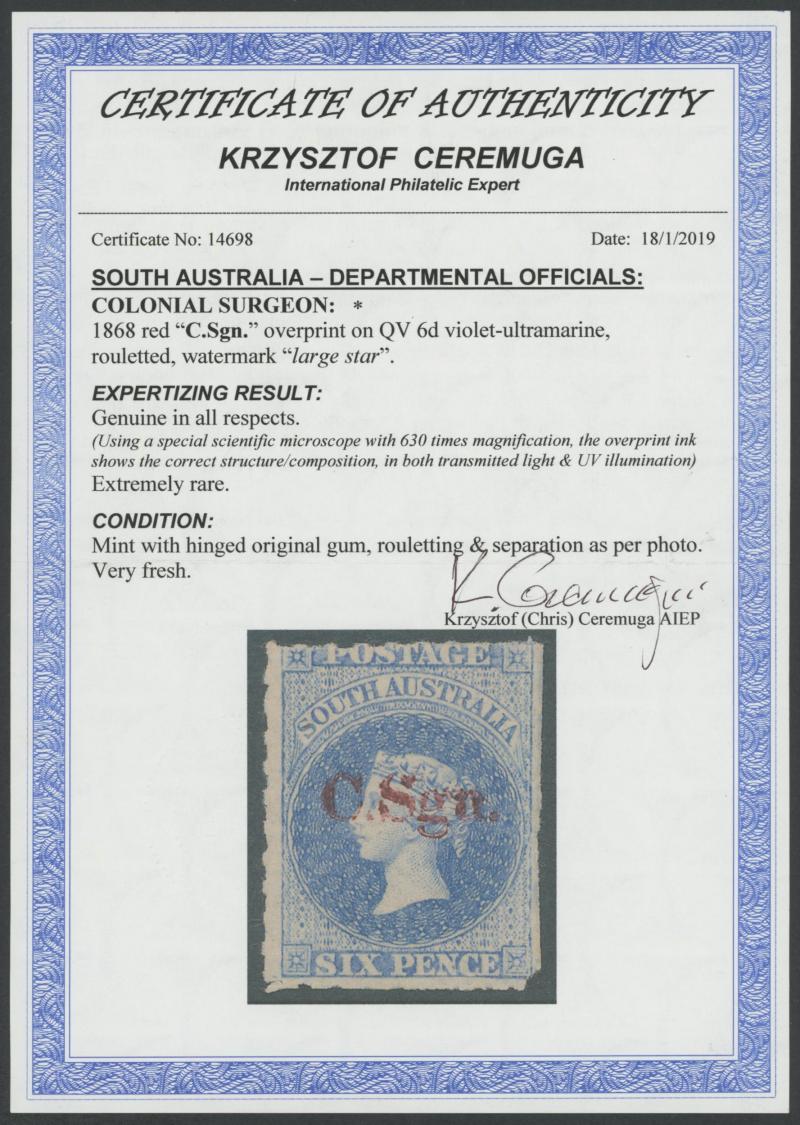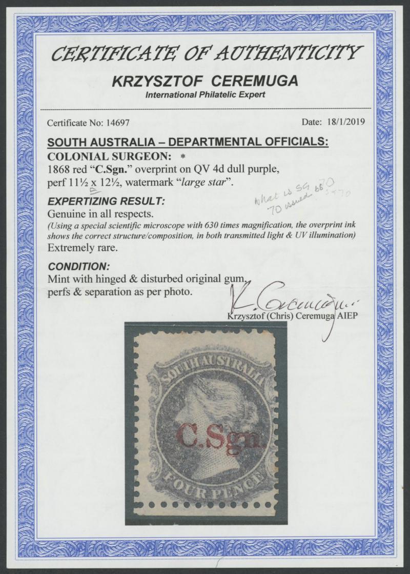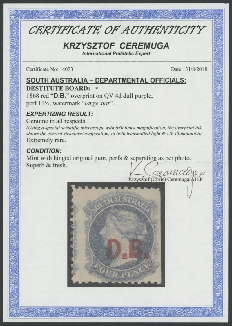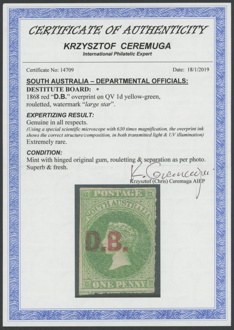 Rated RRRR. Ex 'Sir Humphrey' (Brian Farmer): sold for $350 (Sale 118 Lot 323). Chris Ceremuga Certificate (2018) states "extremely rare". Don Pearce's superb example sold for $4790 (Sale 247 Lot 251). Absent from 'Besancon'. [Date range 17.12.1868