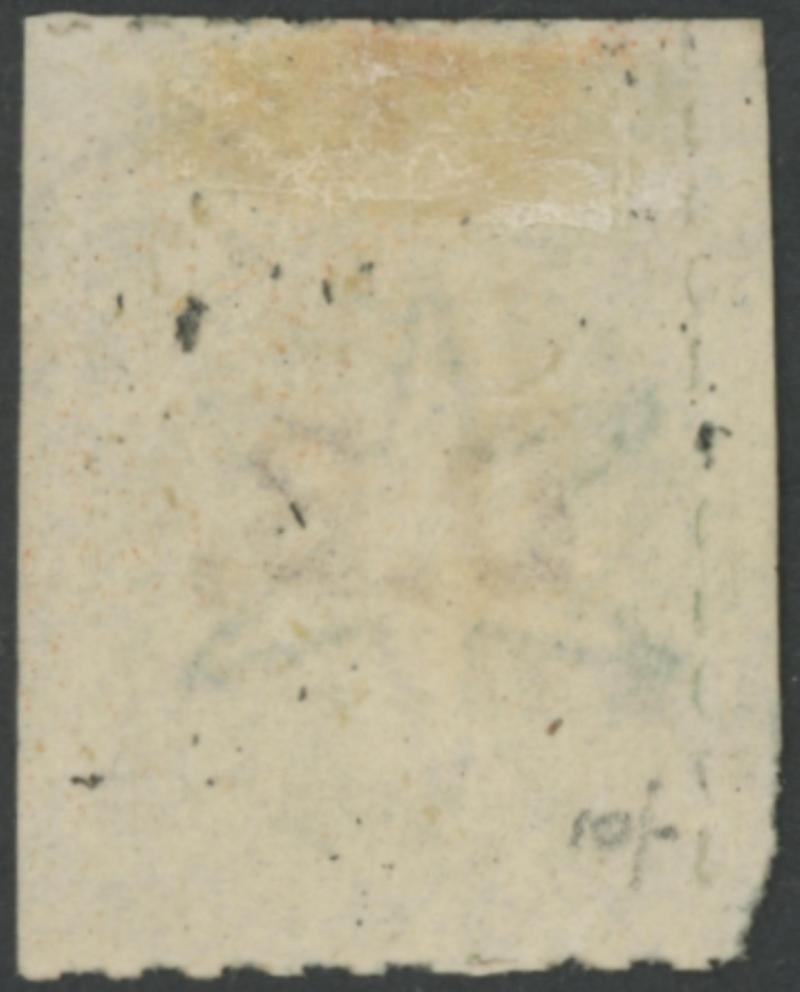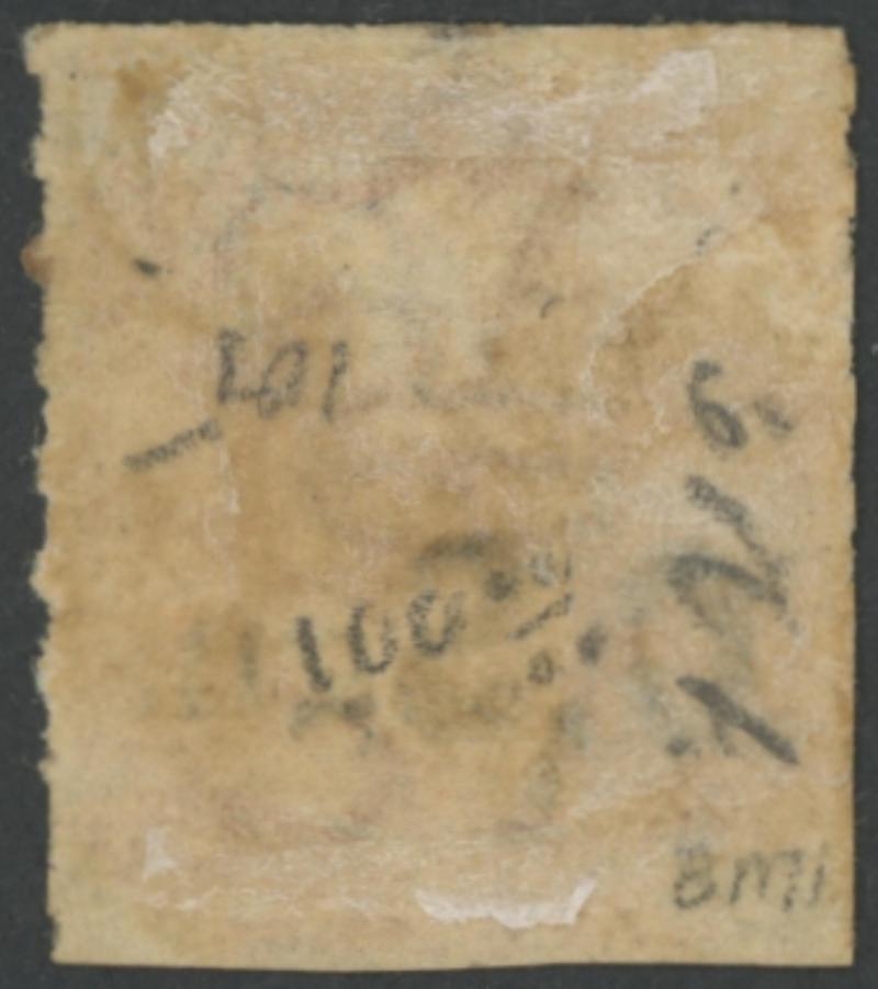 trimmed roulettes at left, unused, unlisted by Gibbons. Rated RRRRRR = only one example recorded; not recorded used. Ex Baron von Ferrary, Theodore Champion and Philip Croker. Chris Ceremuga Certificate (2009) states "Great rarity". Absent from the