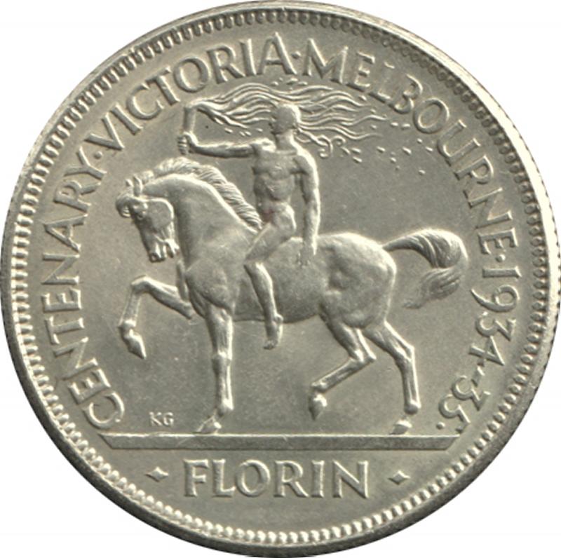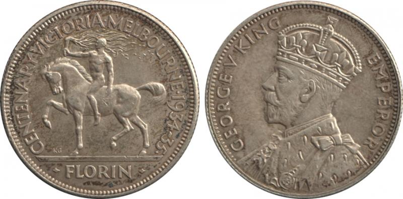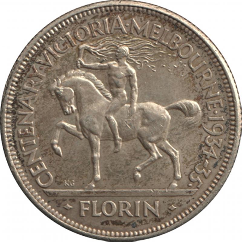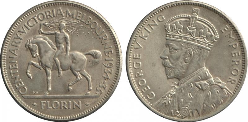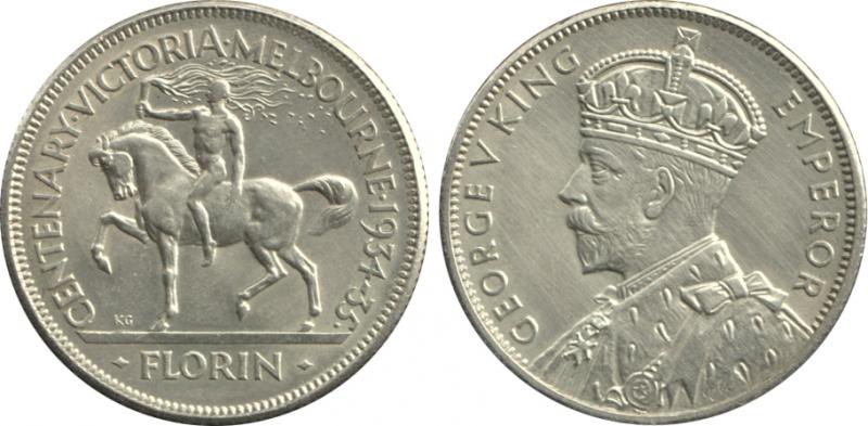 1934-35 KGV 2/- Victoria Centenary, obverse bag mark in field, aUnc, Cat $550. (Image1) (Image2)