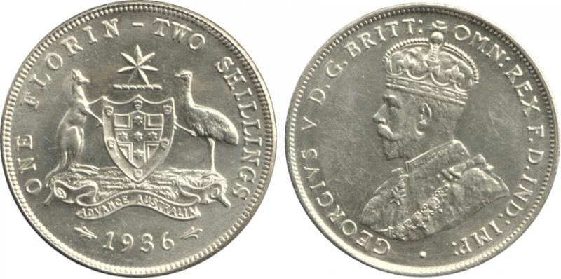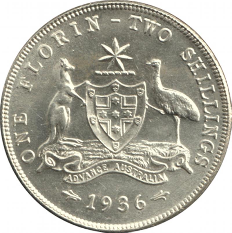 1936 KGV 2/- , well struck with mirror fields, Unc/Choice Uncirculated, Cat $450 for Unc, $850 for ChUnc. (Image1) (Image2)
