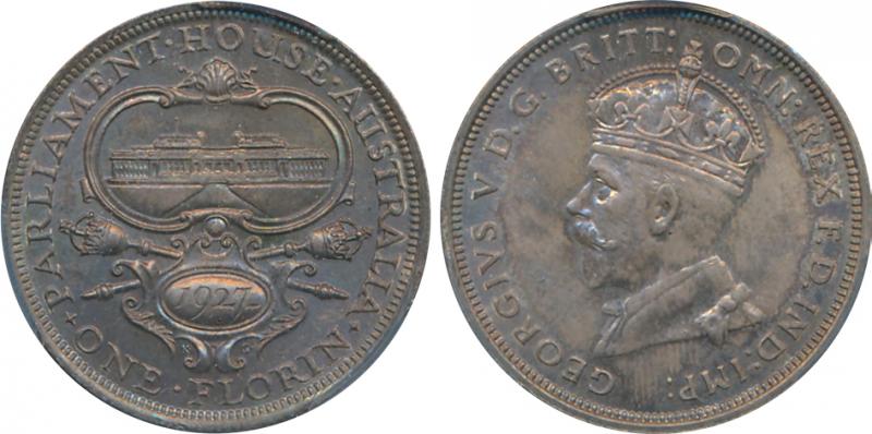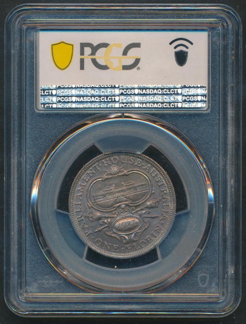 1927 KGV 2/- Canberra, well struck with Two Full Steps to Parliament, in PCGS holder graded 'MS65', overall bluish tone, Cat $275