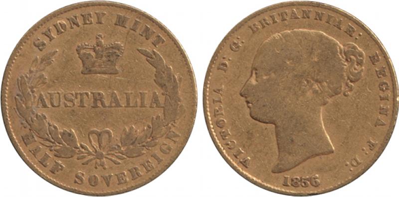 1856 QV Young Head Type I Sydney Mint reverse, Marsh 381 (rated R), aFine. (Image1) (Image2)