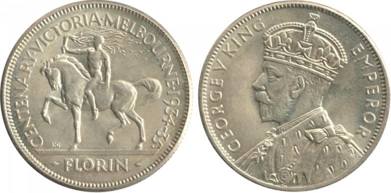 1934-35 KGV 2/- Victoria Centenary, Uncirculated, Cat $800. (Image1) (Image2)