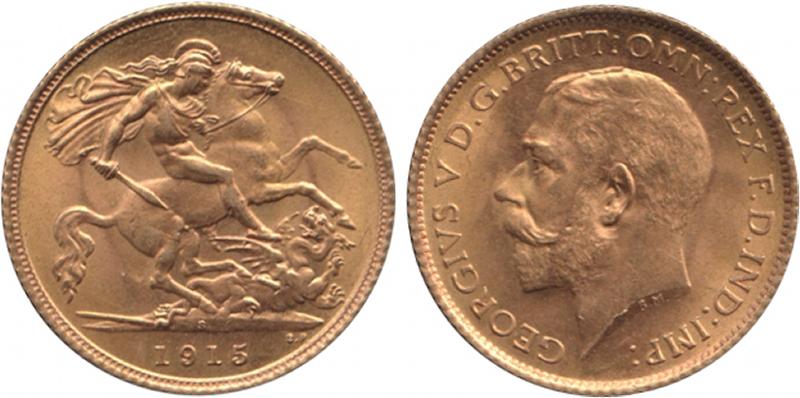 1915S KGV St George reverse, Marsh 540, Spink 4009, Uncirculated. (Image1) (Image2)