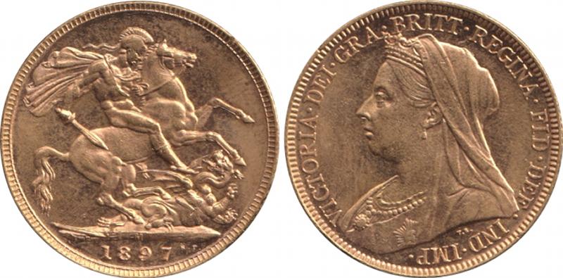 1897M QV Veiled Head St George reverse, Marsh 157, Spink 3875, Uncirculated. (Image1) (Image2)