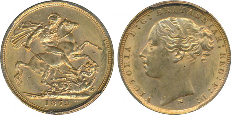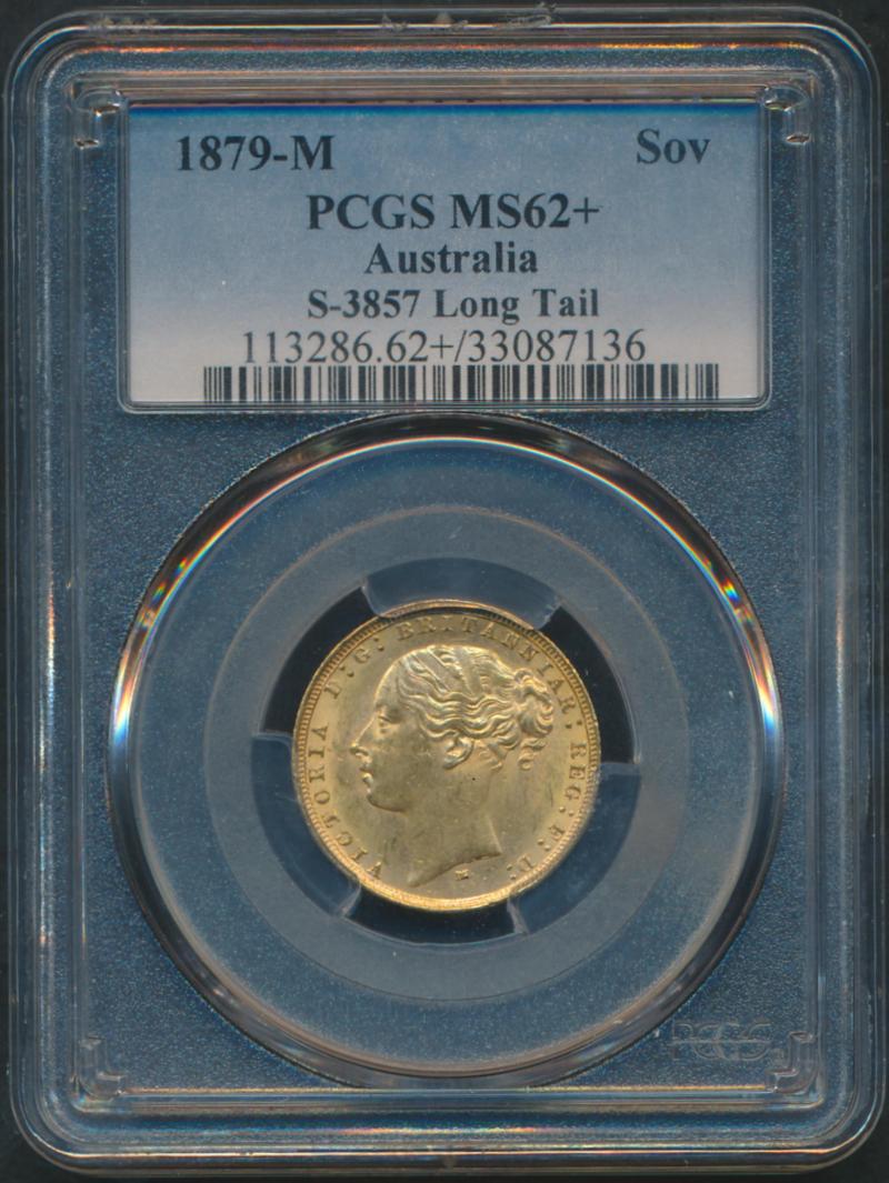1879M QV Young Head St George reverse Long Tail, Marsh 101, Spink 3857, in PCGS holder graded 'MS62+'. (Image1) (Image2)