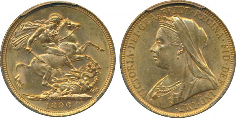 1896M QV Veiled Head St George reverse, Marsh 156, Spink 3875, in PCGS holder graded 'MS62+'. (Image1) (Image2)