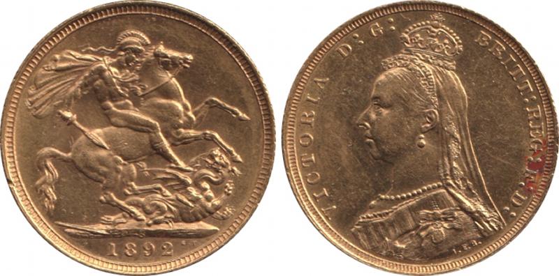 1892S QV Jubilee Head St George reverse, Marsh 143, Spink 3868C, small rev. rim knock, VF. (Image1) (Image2)