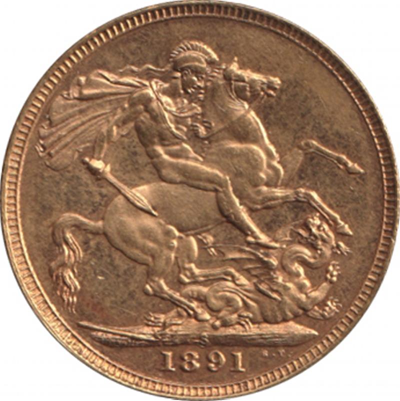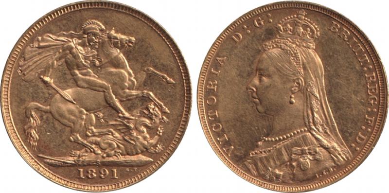1891S QV Jubilee Head Second Legend ('G:' close to Crown) St George reverse, Marsh 142, Spink 3868C, aUnc/Unc. (Image1) (Image2)