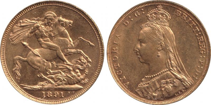 1891S QV Jubilee Head Second Legend ('G:' close to Crown) St George reverse, Marsh 142, Spink 3868C, Uncirculated. (Image1) (Image2)