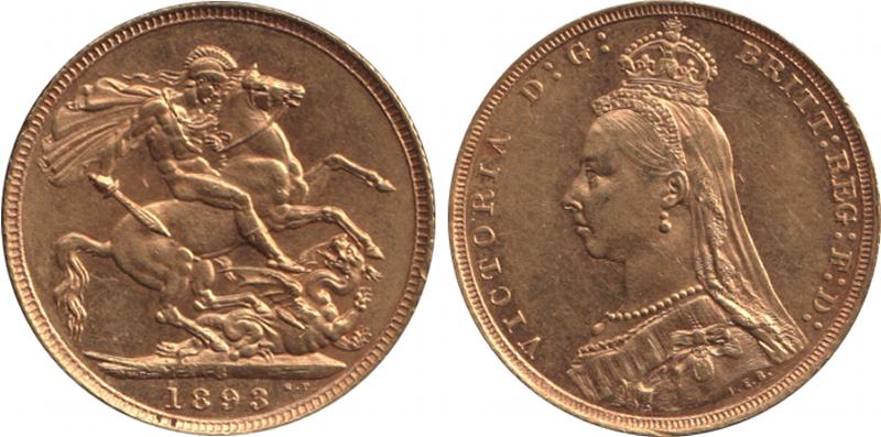 1893M QV Jubilee Head St George reverse, Marsh 137, Spink 3867C, gFine. (Image1) (Image2)
