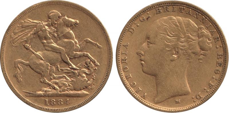 1884M QV Young Head St George reverse 'WW' Buried Short Tail, Marsh 106, Spink 3857B, aUnc. (Image1) (Image2)