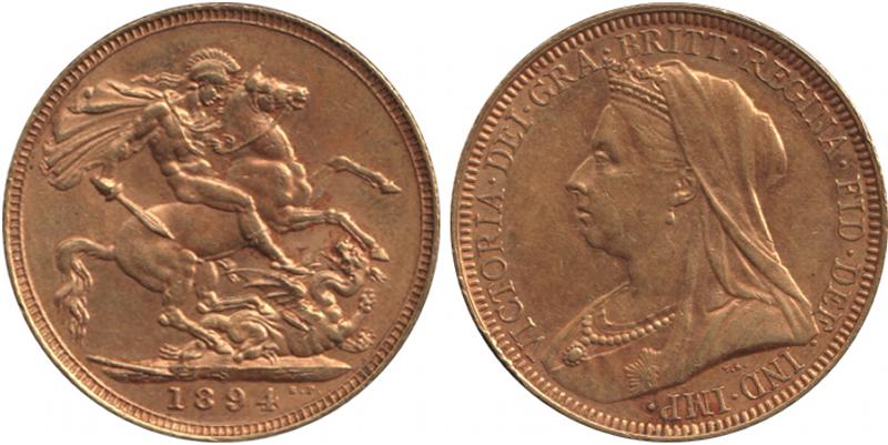 1894S QV Veiled Head St George reverse, Marsh 163, Spink 3877, EF. (Image1) (Image2)