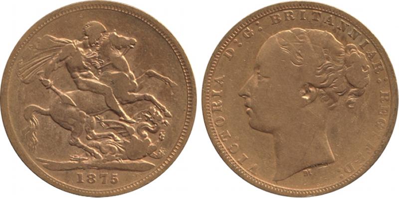 1875M QV Young Head St George reverse, Marsh 97, Spink 3857, Fine. (Image1) (Image2)